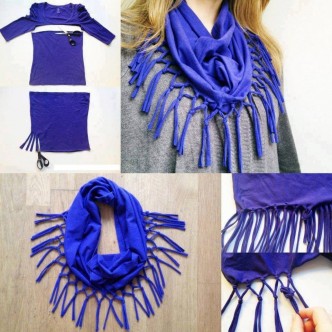 Here is another great no sew scarf project. To turn your old T-shirt into this nice fringe scarf, you don’t need any …